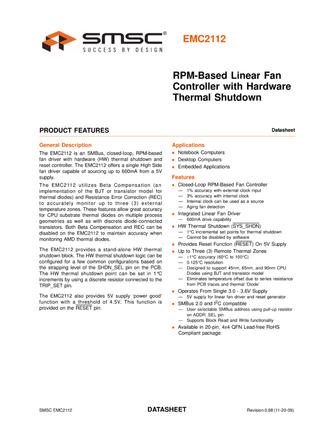 EMC2112 RPM-Based Linear Fan Controller with Hardware Thermal Shutdown Data She (11/20/2009)