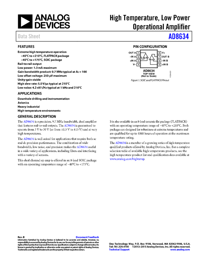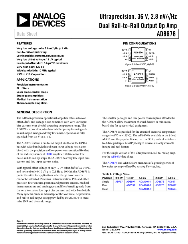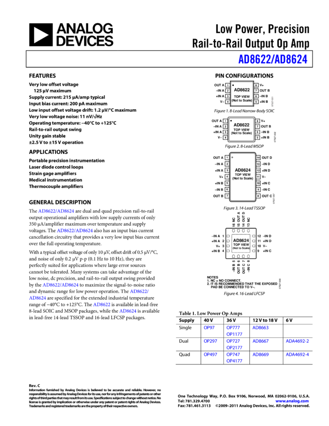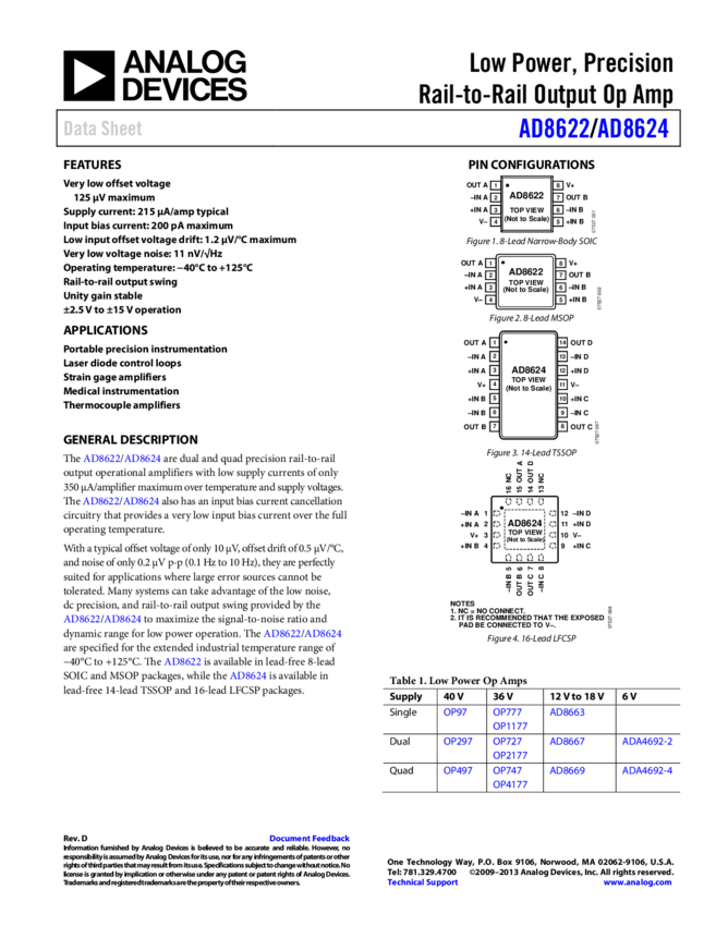 AD8622: Low Power, Low Noise, Low Bias Current, Precision Dual RRO Op Amp