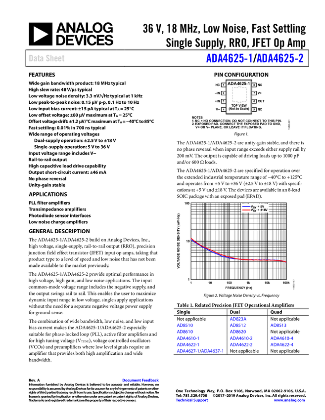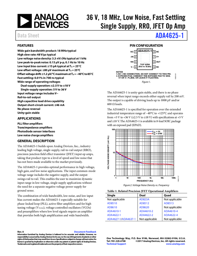 36 V, 18 MHz, Low Noise, Fast Settling Single Supply, RRO, JFET Op Amp