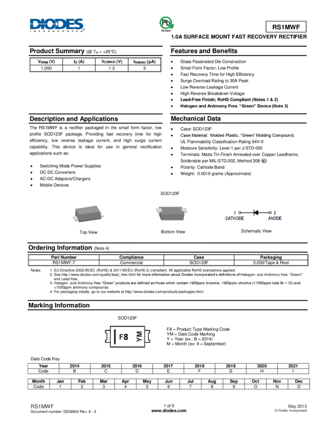 0.8 A, 1000 V Surface Mount Fast Recovery