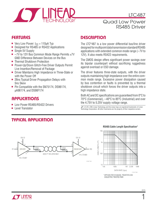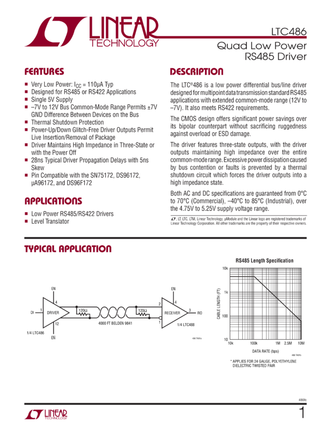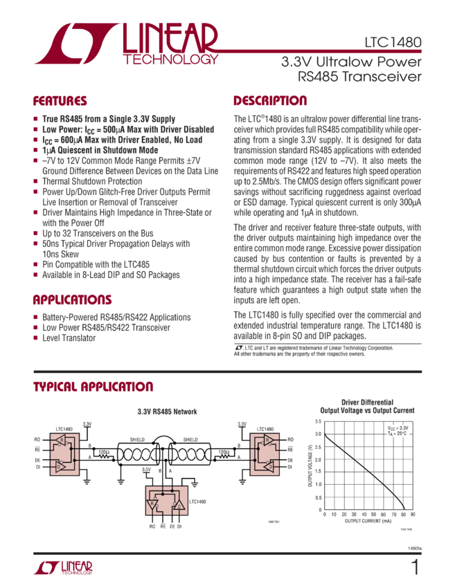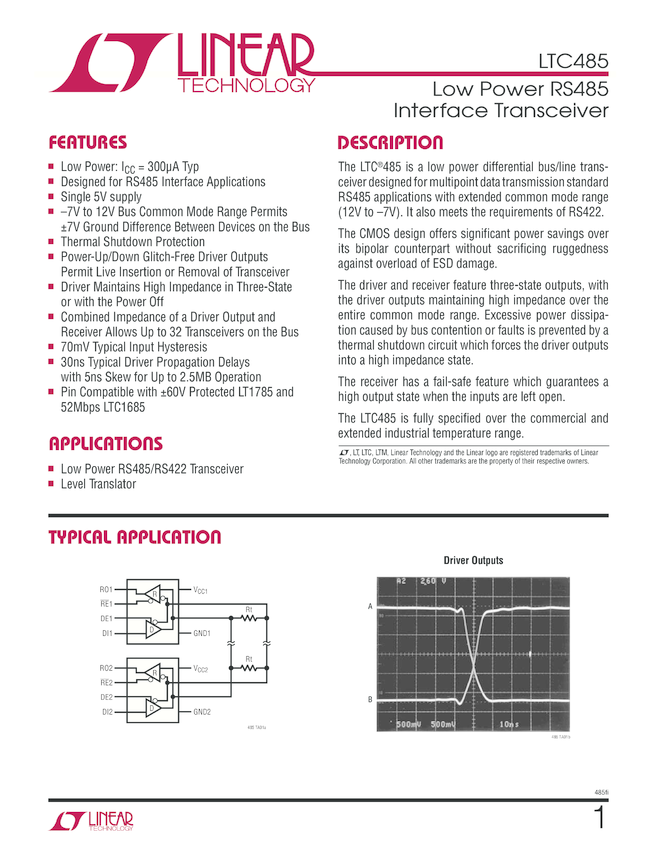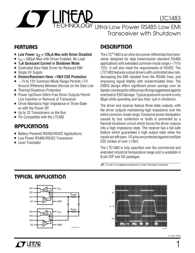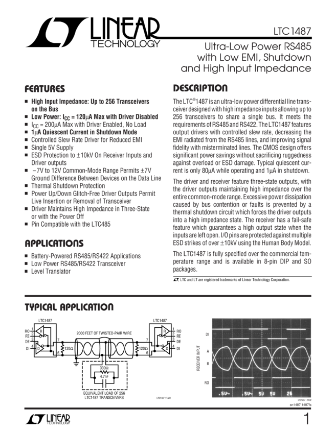 Ultra-Low Power RS485 with Low EMI, Shutdown and High Input Impedance