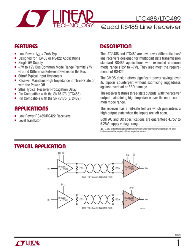 Low Power RS485 Transceiver with Receiver Fail-Safe