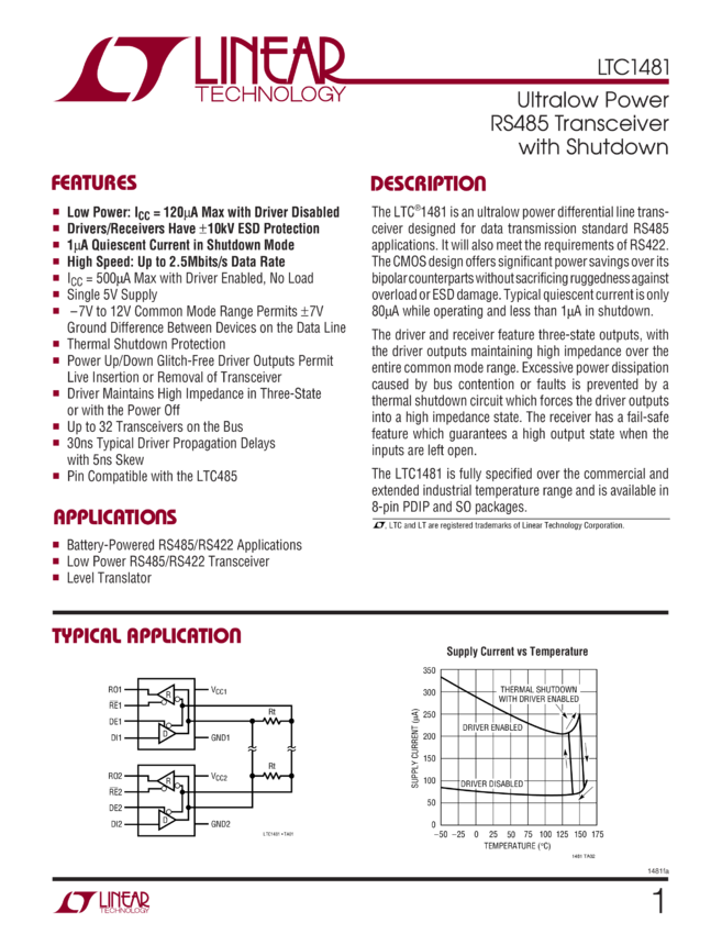 Ultra-Low Power RS485 Transceiver with Shutdown
