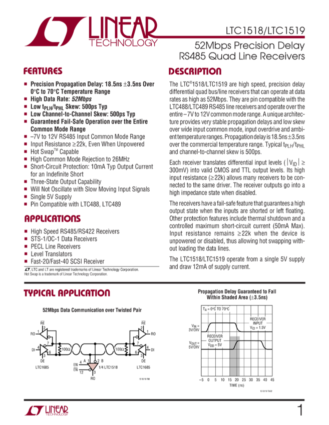High Speed, Precision Delay RS485 Quad Line Receivers