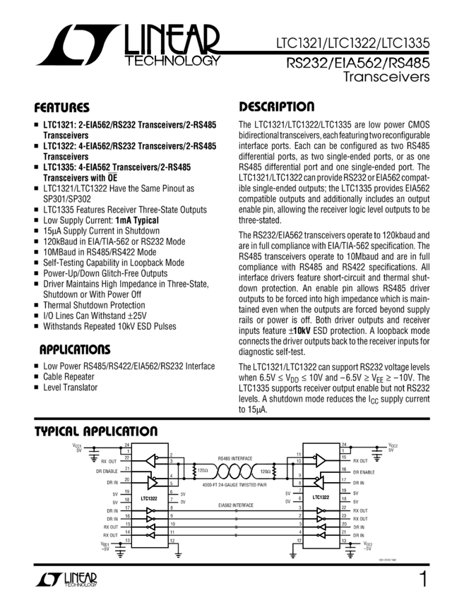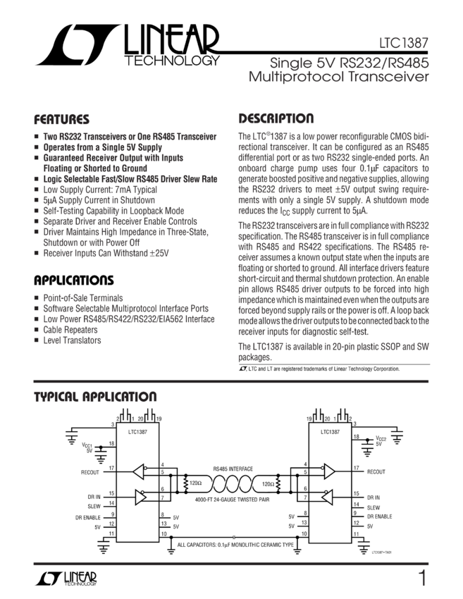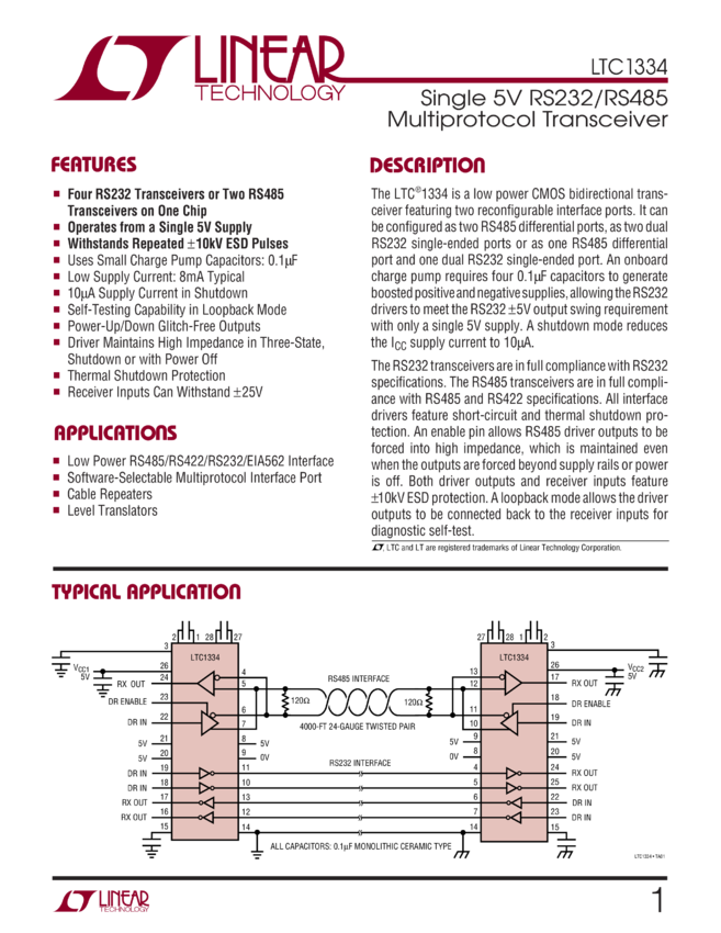 Single 5V RS232/RS485 Multiprotocol Transceiver