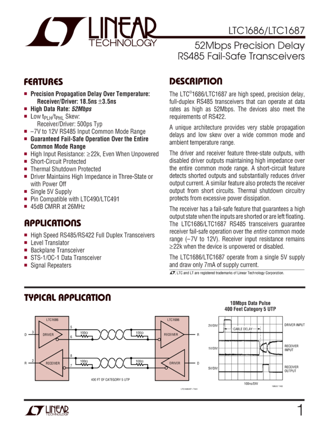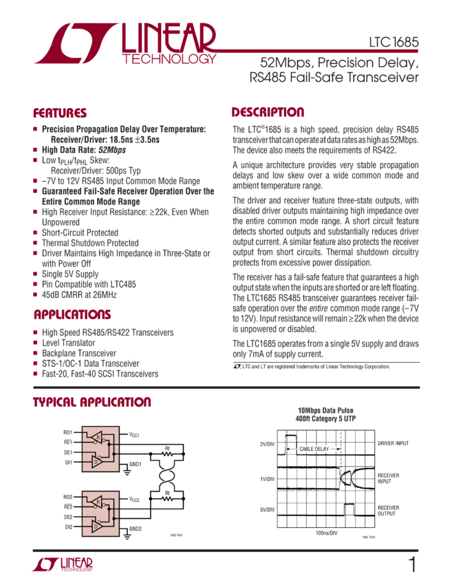 52Mbps Precision Delay RS485 Fail-Safe Transceivers