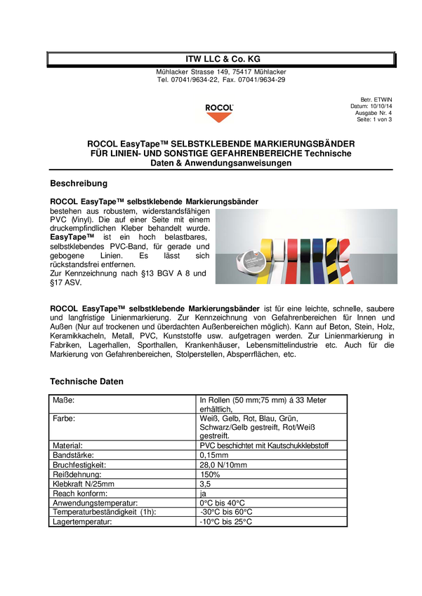 Taśma ostrzegawcza Rocol EasyTape™ RS56001 RS56001 (D x S) 33 m x 50 mm 33 m 1 szt.
