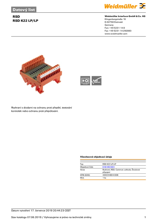 Moduł transferowy Weidmüller RSD K22 LP/LP 0181061001, 1 szt.