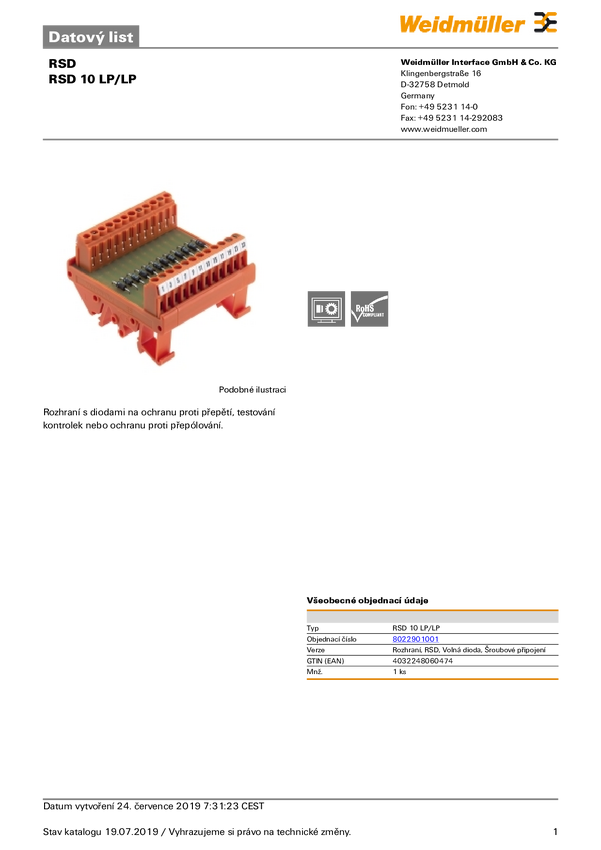 Interfejs, RSD, Free diode, złącze śrubowe RSD 10 LP/LP Weidmüller Zawartość: 1 szt.