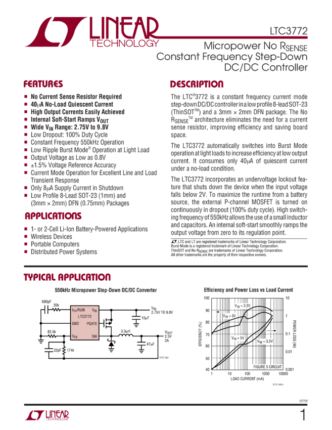 Micropower No RSENSE Constant Frequency Step-Down DC/DC Controller