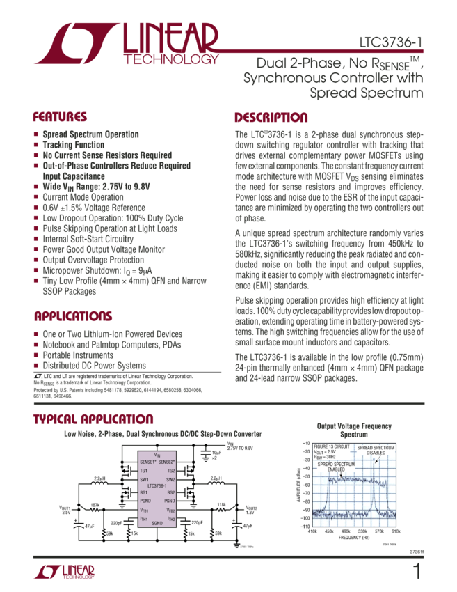 Dual 2-Phase, No RSENSE Synchronous Controller with Spread Spectrum
