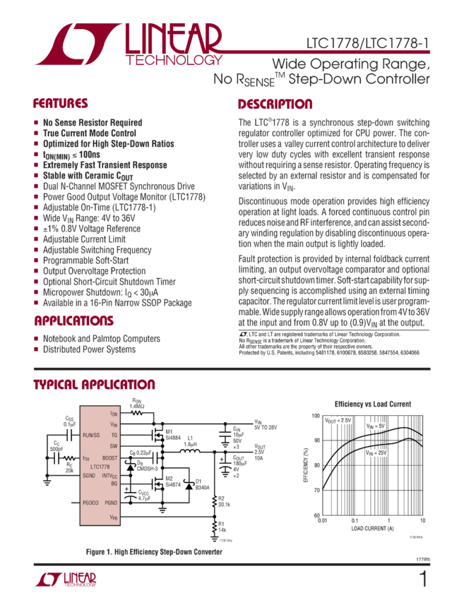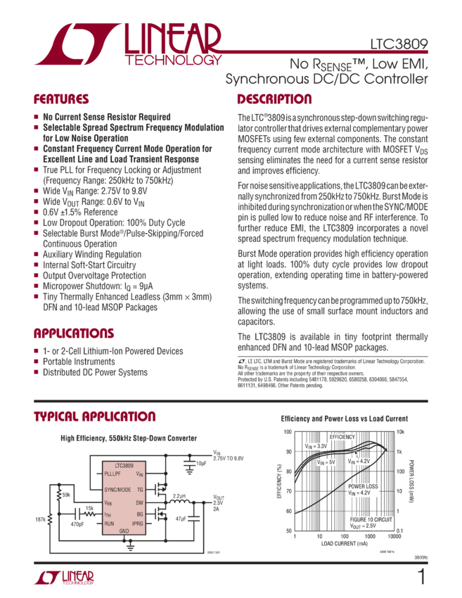 No Rsense, Low EMI, Synchronous DC/DC Controller