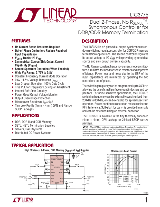 Dual 2-Phase, No RSENSE Synchronous Controller for DDR/QDR Memory Termination