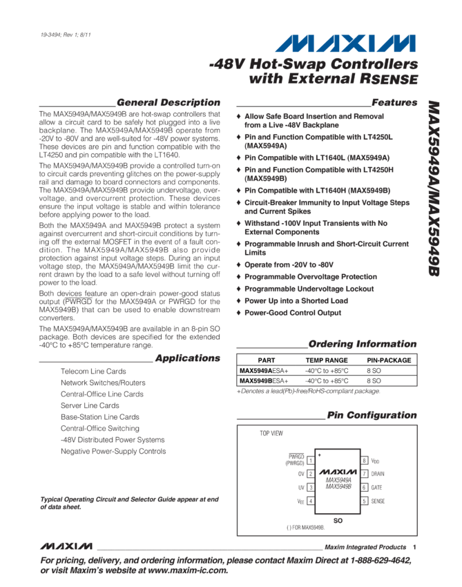 MAX5949, MAX5949A, MAX5949B -48V Hot-Swap Controllers with External RSENSE