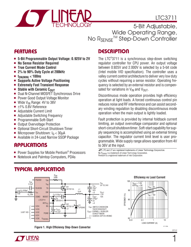 5-Bit Adjustable, Wide Operating Range, No RSENSE Step-Down Controller
