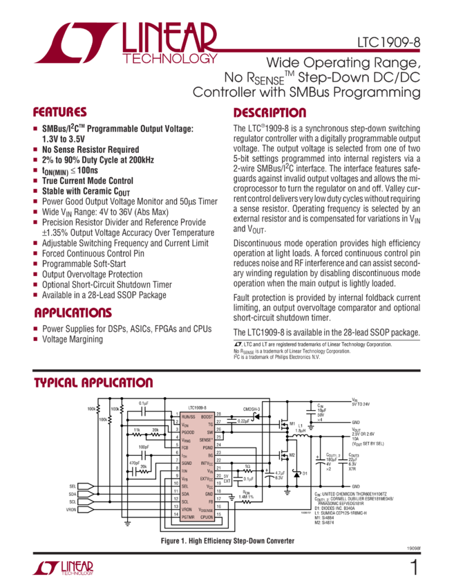 Wide Operating Range, No RSENSE Step-Down DC/DC Controller with SMBus Programming