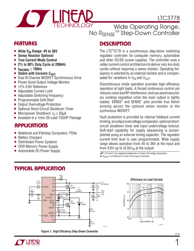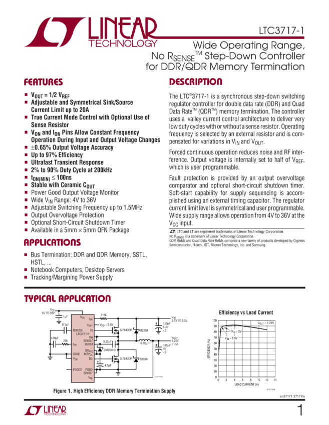 Wide Operating Range, No RSENSE Step-Down Controller for DDR/QDR Memory Termination