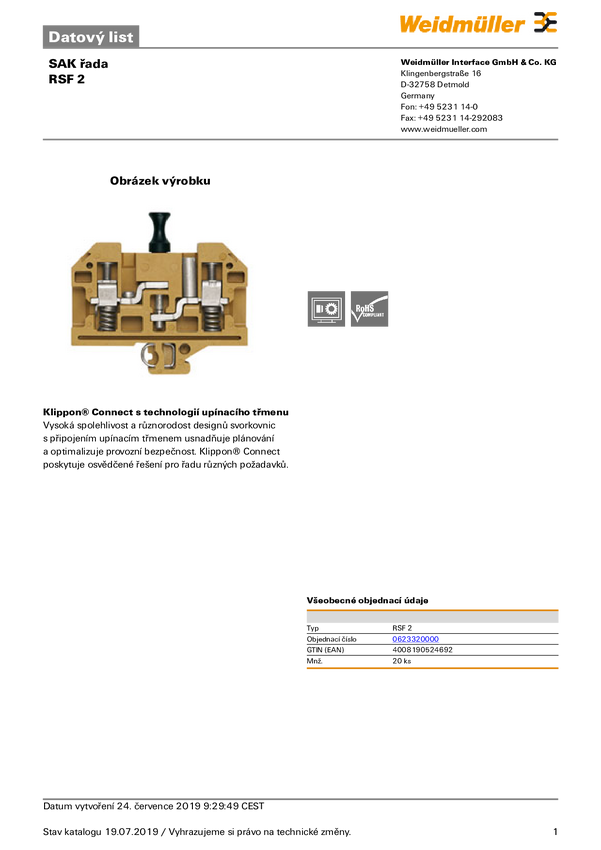 Złączka szeregowa RSF 2 0623320000 średni żółty Weidmüller 20 szt.