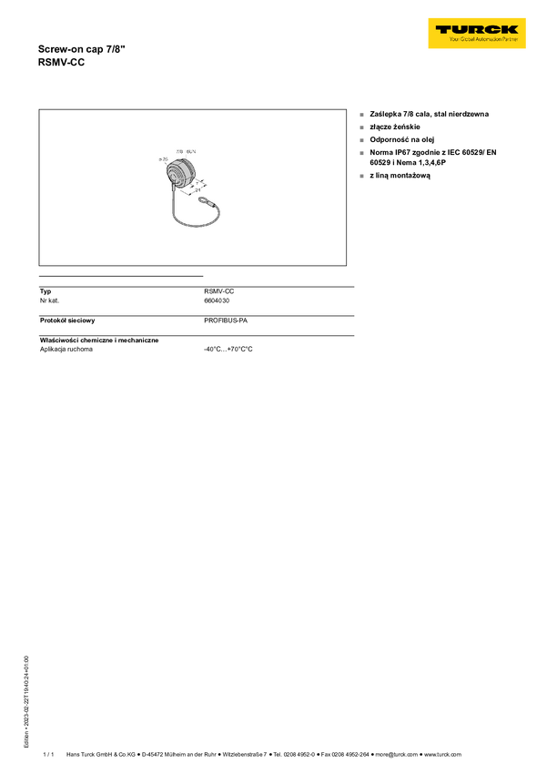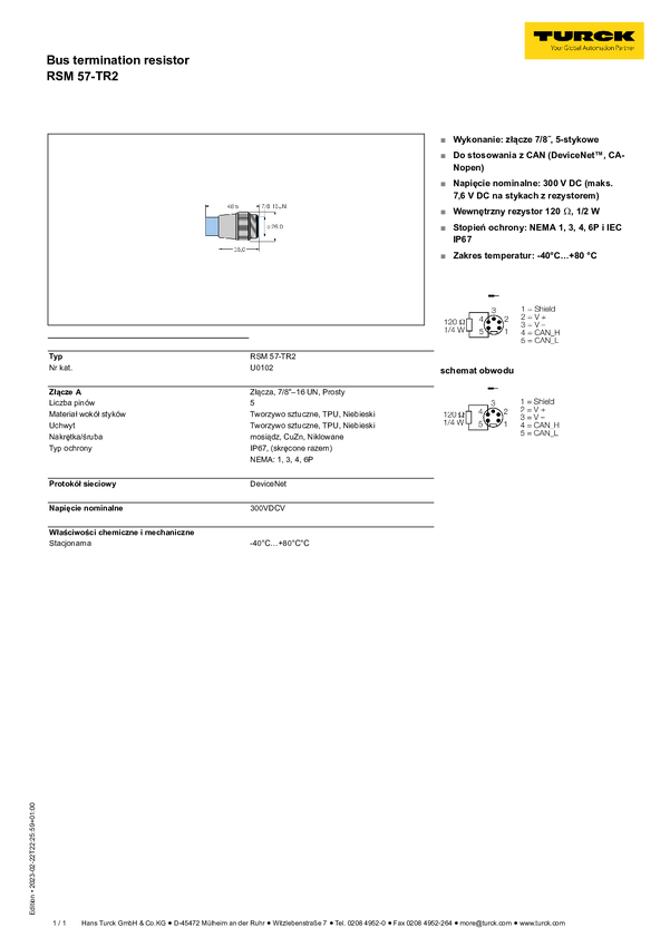 Turck U0102 Opornik RSM 57-TR2 1 szt.