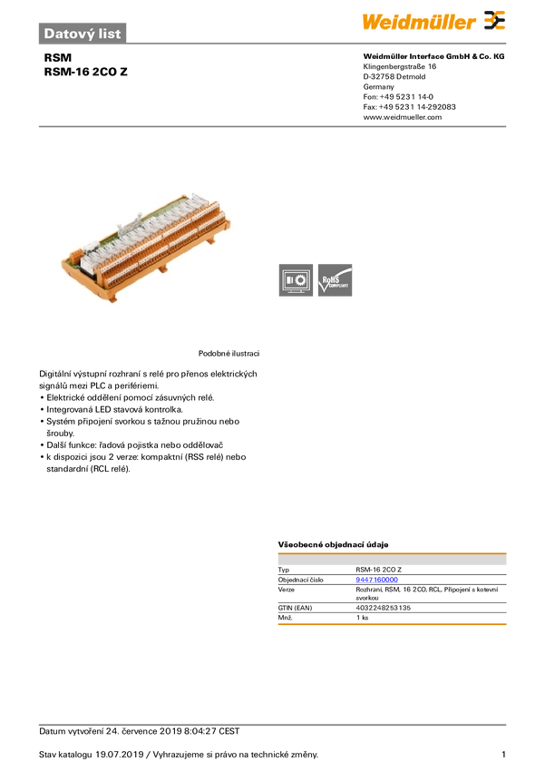 Interfejs, RSM, 16 2CO, RCL, złącze sprężynowe Weidmüller 9447160000 RSM-16 2CO Z Zawartość: 1 szt.