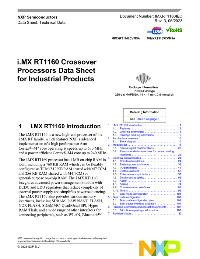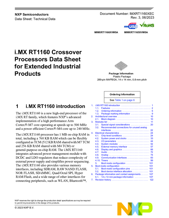i.MX RT1160 crossover MCU, Arm Cortex-M7