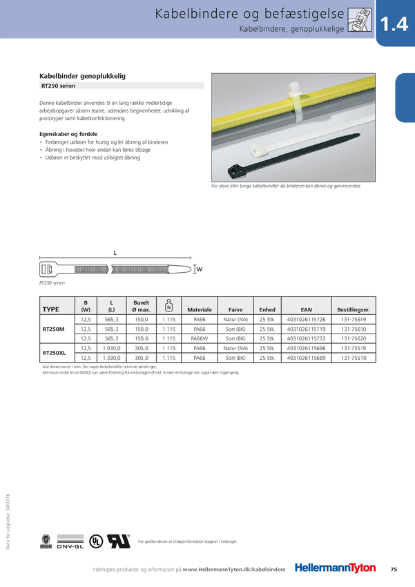 Opaska kablowa HellermannTyton RT250M-PA66UV-BK 131-75620, poliamid, 1 szt.
