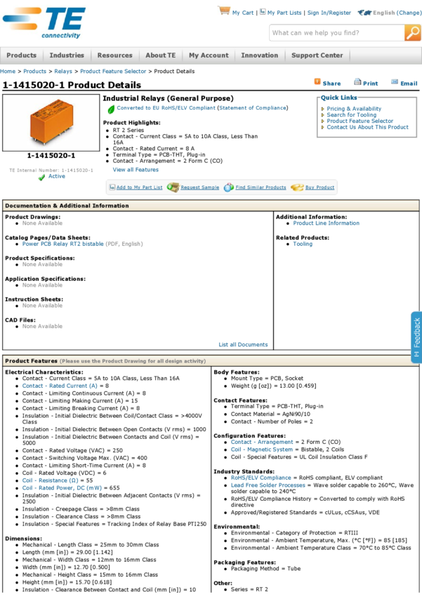 Electromechanical Relay SPDT 12A 115VAC 8.1KOhm Through Hole