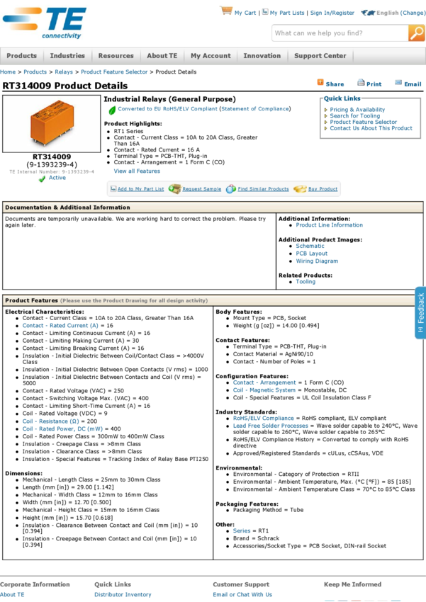 Przekaźnik; elektromagnetyczny; RT314024; 24V DC; 16A/250V; SPDT 1 styk przełączny; na PCB; TE Conectivity; 9-1393239-8; = RM85-2011-35-1024; G2RL-1-E-24DC; RoHS