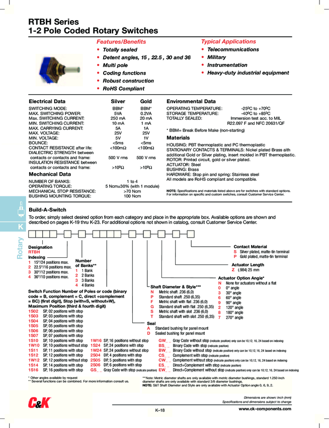 Switch Rotary 16 Round Shaft PC Pins 0.25A 25VAC 25VDC 5VA