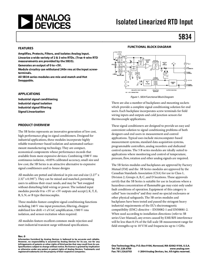 Isolated 2-, 3-, or 4-Wire RTD Input Signal Conditioning Module