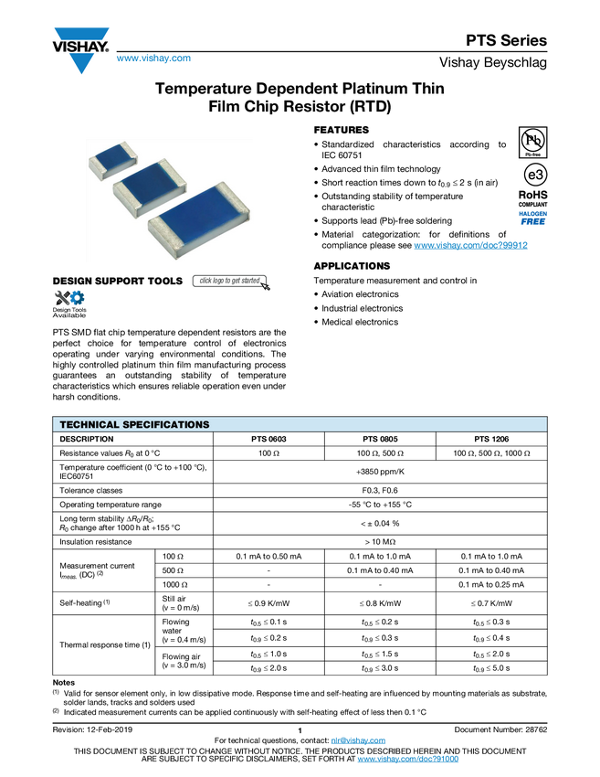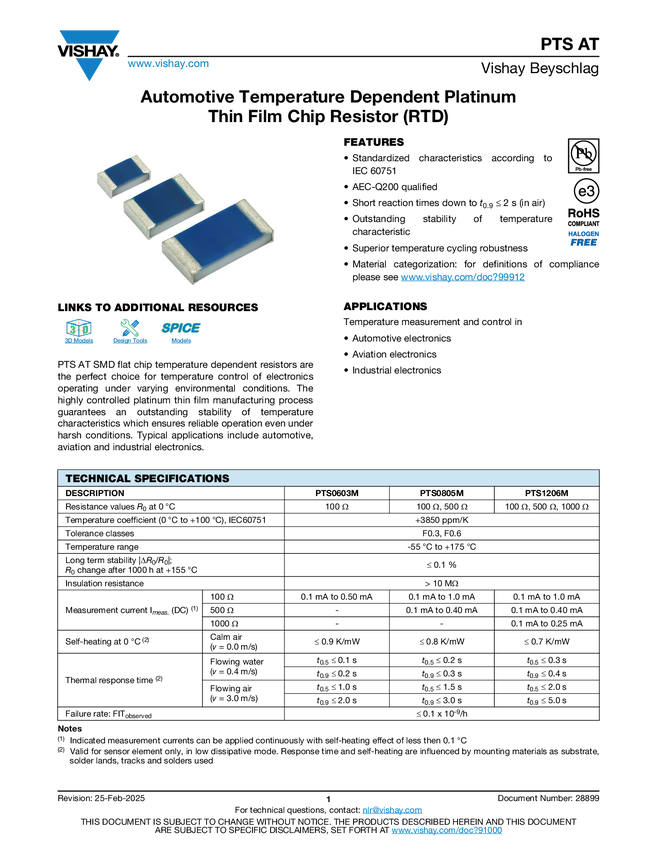 Temperature Dependent Platinum Thin Film Chip Resistor (RTD)