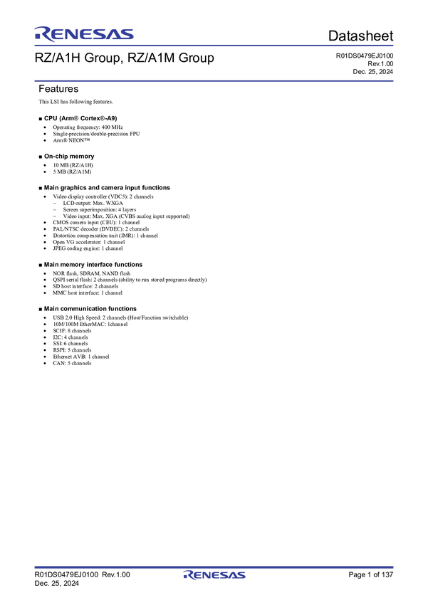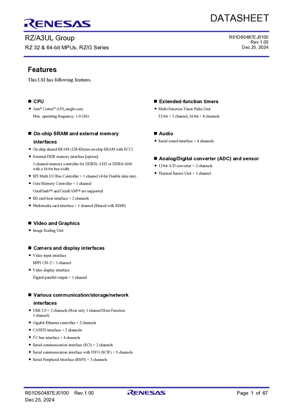 Image Processing RTOS MPU with DRP and 4MB of On-chip RAM