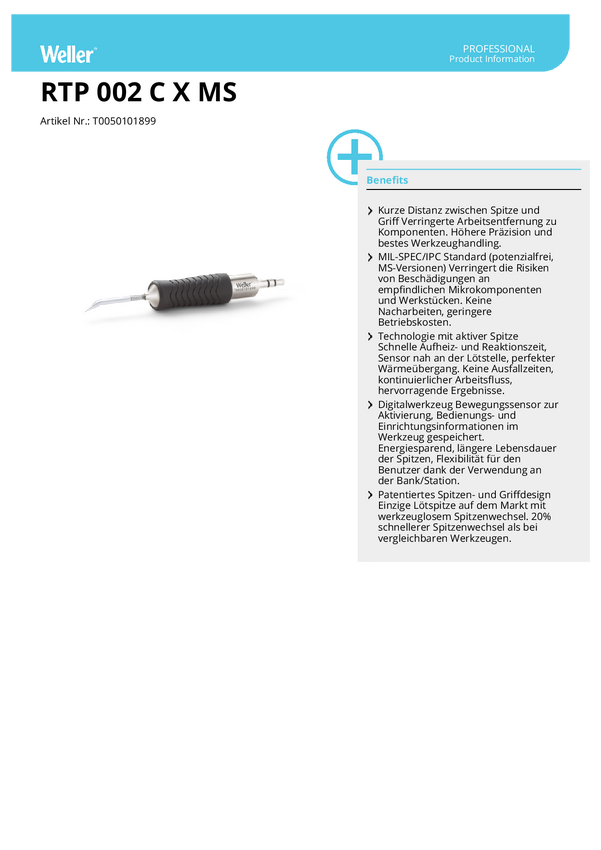 Grot lutowniczy Weller RTP 002 S NW MS T0050102299 1 szt.