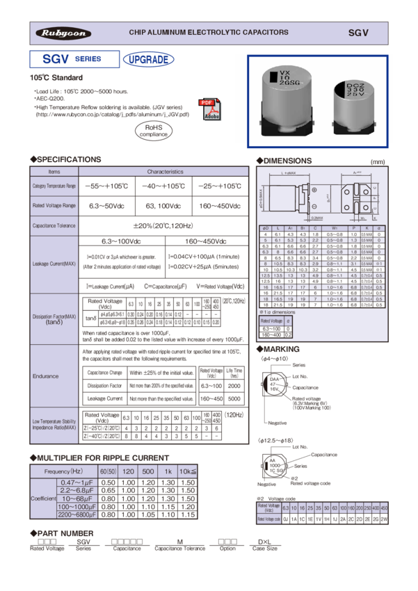 CAPACITOR, Aluminum Electrolytic, Snap In, VXG Series, Cylindrical Can, 100Vdc, 1000µF, ±20%, PET Sleeve, ø25x30mm long