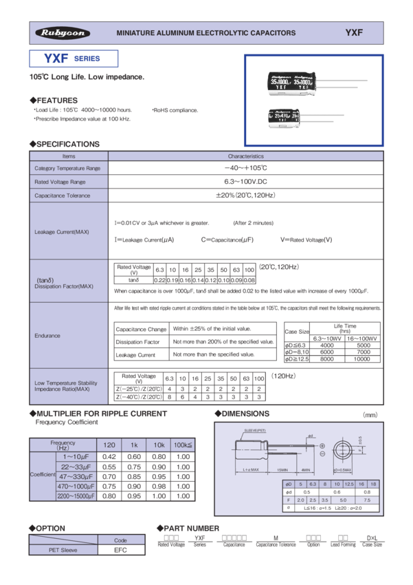 Cap Aluminum 820uF 63V 20% (16 X 31.5mm) Radial Cylindrical 7.5mm 2810mA 5000 hr 105°C Bulk