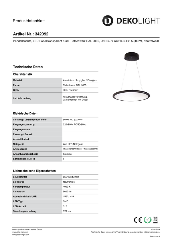 Lampa sufitowa, podwieszana Deko Light LED Panel transparent rund 342092 53.70 W