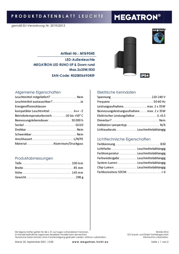Zewnętrzna lampa ścienna Megatron RUNO Rund MT69045 IP54