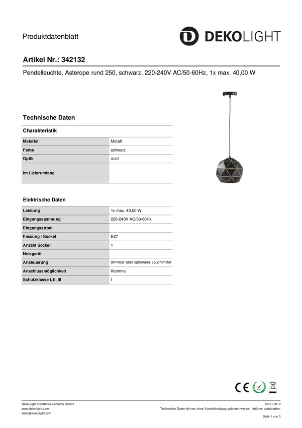 Lampa sufitowa, podwieszana Deko Light Asterope rund 250 342132 E-27 40 W czarny
