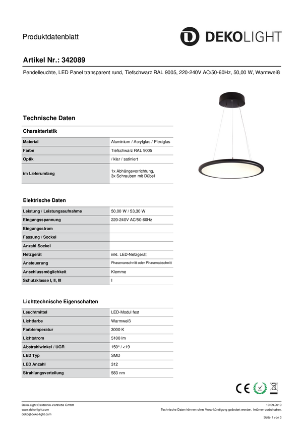 Lampa sufitowa, podwieszana Deko Light LED Panel transparent rund 342089 53.30 W