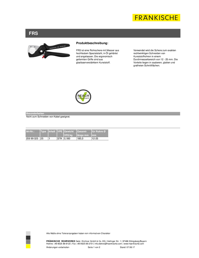 Nożyce do rur Fränkische Rohrwerke 25999025 1 szt.