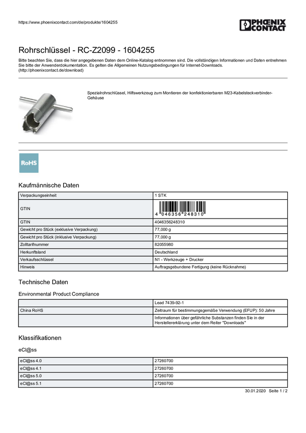 Klucz do rur RC-Z2099 Phoenix Contact 1604255
