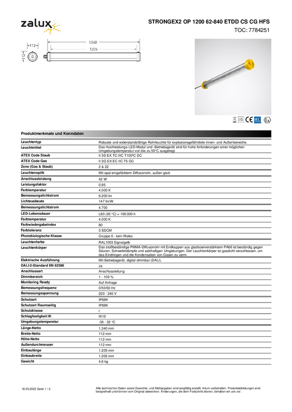 Lampa rurowa LED Trilux STRONGEX2 1 #7782851 7782851, 42 W, 6200 lm