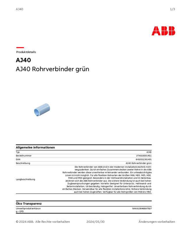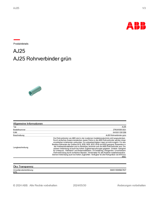 Łącznik rurowy ABB 2TKA160014G1 zielony 1 szt.