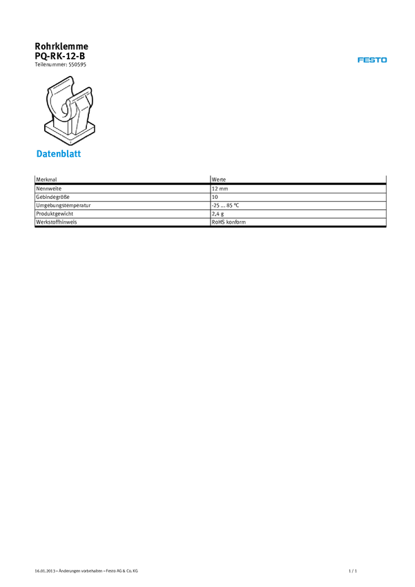 Zacisk rurowy FESTO PQ-RK-12-B 550595-10