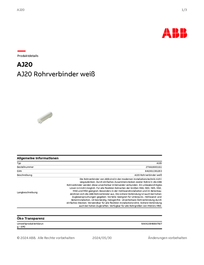Łącznik rurowy ABB 2TKA160011G1 biały 1 szt.
