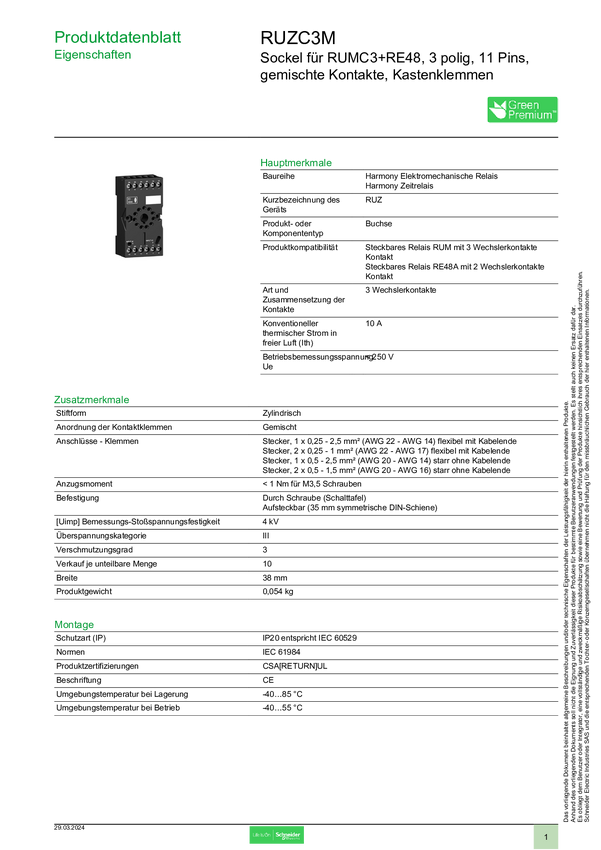 Schneider Electric RUZSC3M Gniazdo przekaźnika, 10 szt.