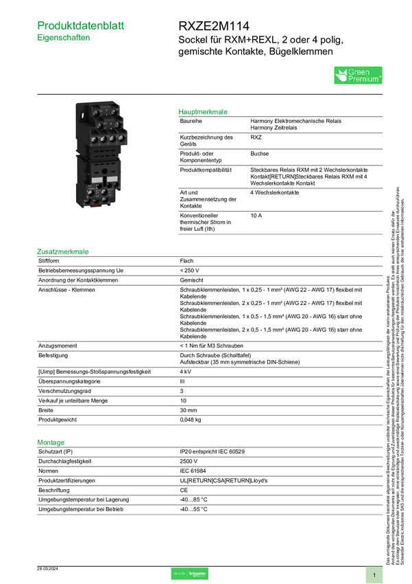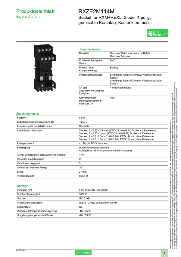 Schneider Electric RXZE2M114 Gniazdo przekaźnika, 10 szt.