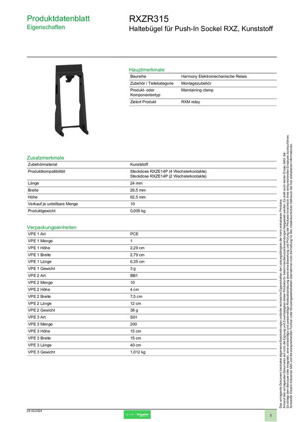 Schneider Electric RXZE14P Gniazdo przekaźnika, 10 szt.