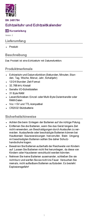 Zegar czasu rzeczywistego TRU COMPONENTS TC-9927136 1 szt.