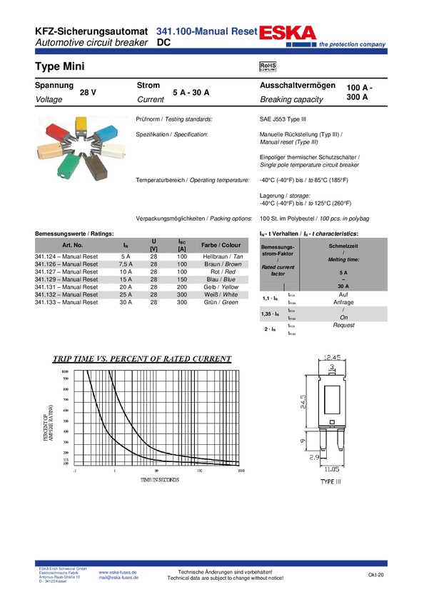 Hansor Circuit Breaker Mini, type 3. Manual Reset, 7,5A CBA3 Series 7,5A Wyłącznik instalacyjny nożowy 7.5 A brązowy 1 s
